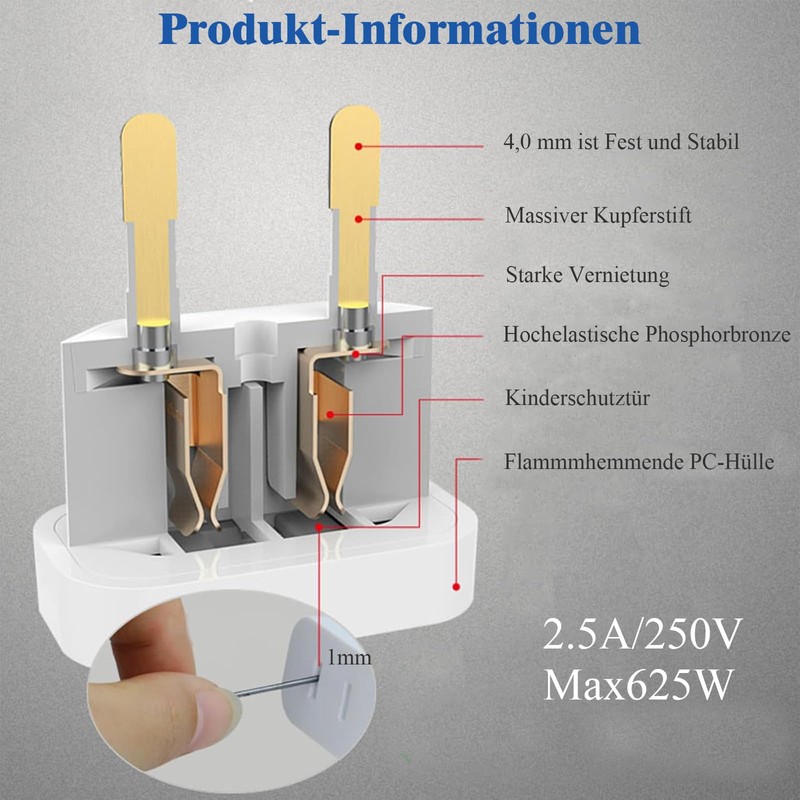 • 【Multi-Geräte-Unterstützung】Jedes Adapter China Deutschland Stecker-Paket enthält zwei Einheiten zum gleichzeitigen Laden. Das Adapter Steckdose USA-zu-EU-Design unterstützt amerikanische Stecker. Ideal für Geschäftsreisen oder Urlaub in Europa mit Geräten aus kompatiblen Regionen.