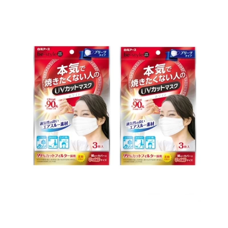 (2個セット)白元アース ビースタイル UVカットマスク プリーツタイプ 3枚