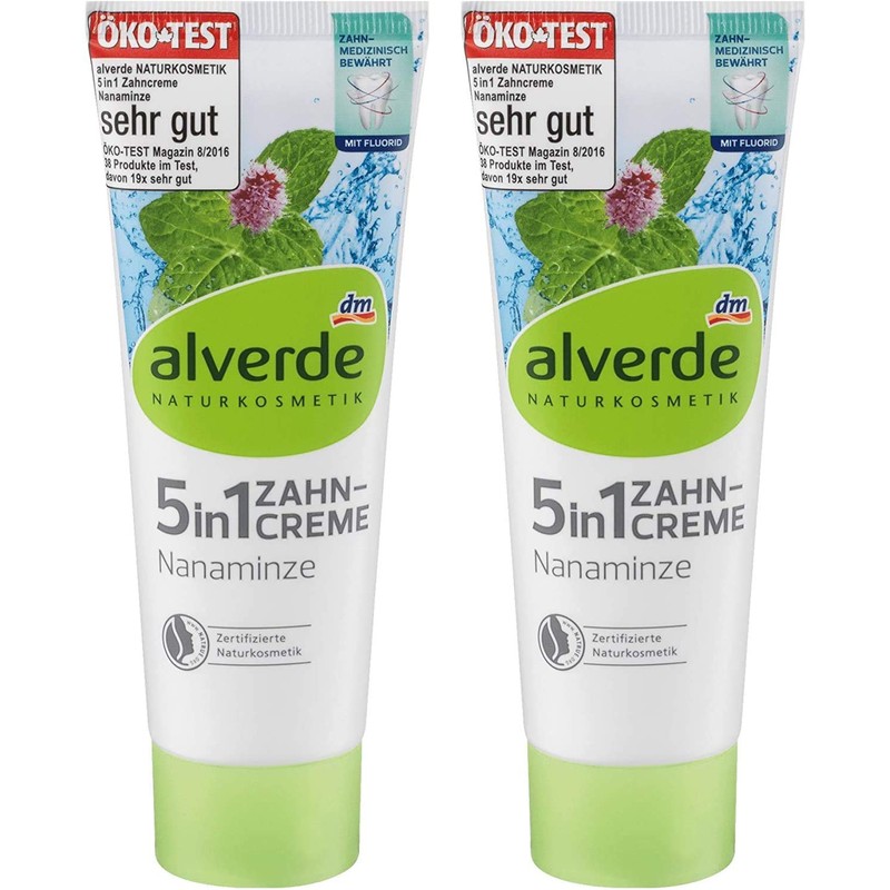 - 2 x alverde natural cosmetics toothpaste 5-in-1 Nanaminze 75 ml