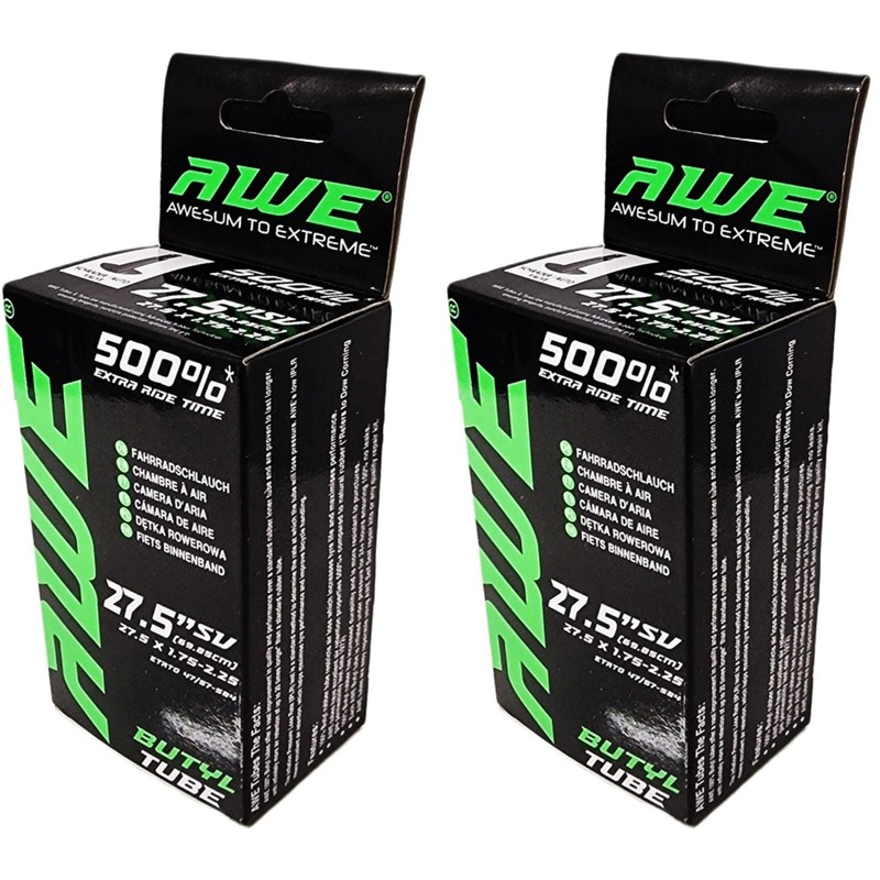 2 X AWE Butyl Rubber 27.5 Inch Inner Tube 500%* Extra Ride Time 27.5 x 1.75-2.25 Schrader Valve