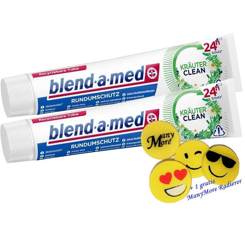 | Manufacturer: | Blend-a-med (nur Zahnpasta) + ManyMore Onlinehandel (nur Radierer) |