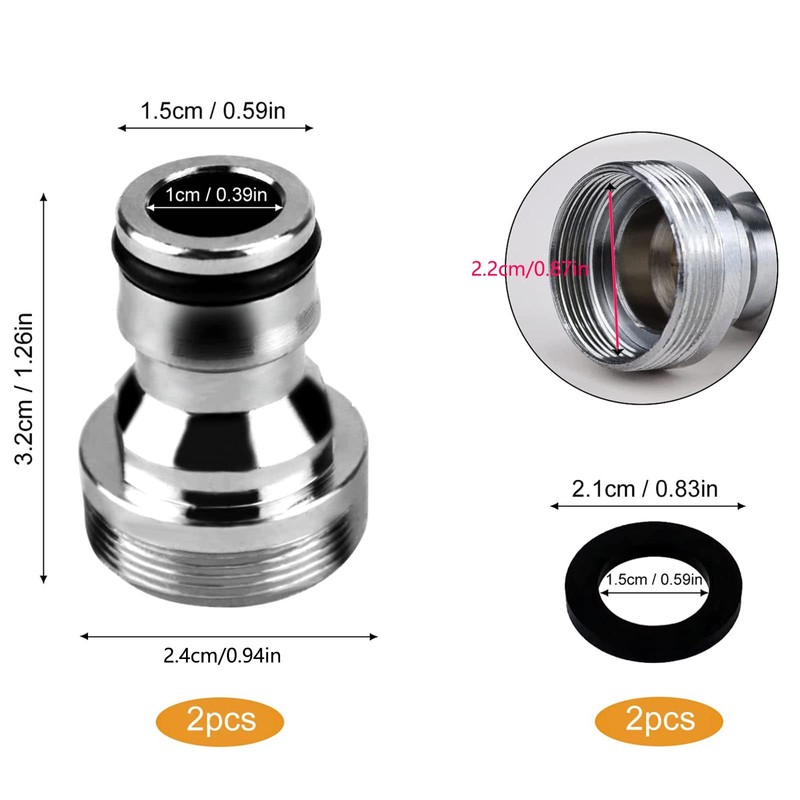 • Packaging and size: M22 x 1 female thread and M24 x 1 male thread. Tap connector total size: 32 x 24 mm / 1.26 inch x 0.94 inch, female thread diameter: 22 mm, external thread diameter: 24 mm. You can connect all sorts of garden irrigations to the hose, whether lawn sprinkler or water hose.