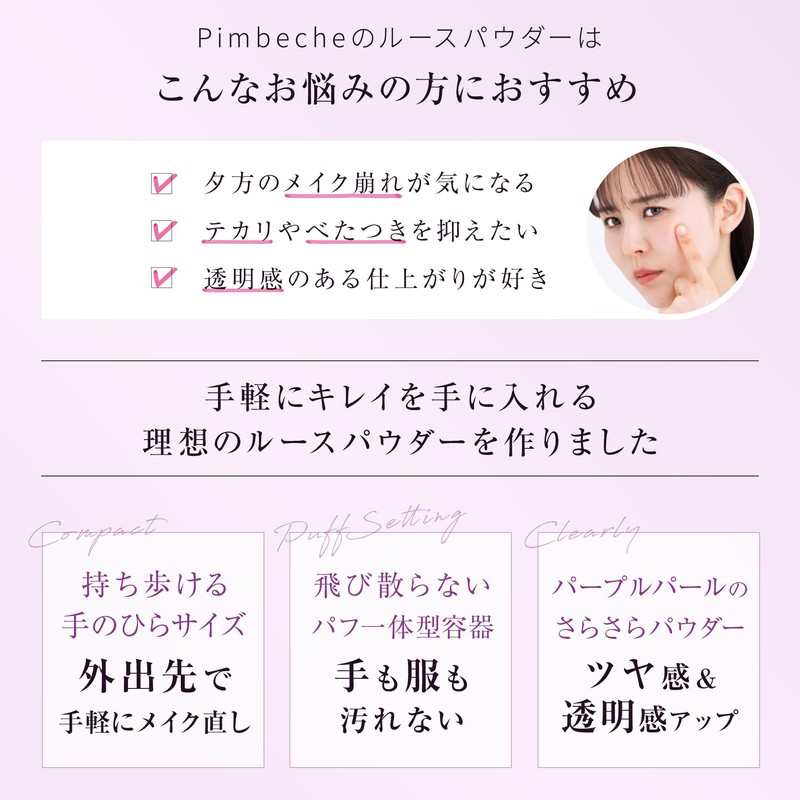 【手のひらサイズで持ち運びやすい】横4.2cm縦5.2cmと手のひらにおさまるリップクリームサイズです。ポケットに入れても化粧ポーチに入れてもかさばりません。旅行用の持ち運びパウダーや、外出先のテカリ直し用のパウダーとしてバッグにしのばせておくお守りコスメとしてご活用いただけます。鏡付きなので、化粧室に行かないちょっとしたリップ直しの時にも活躍します。
