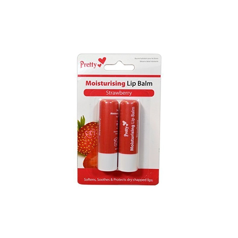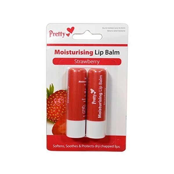 2 x Strawberry Moisturising Lip Balm Tubes by Pretty - Softens, Soothes & Protects Dry Chapped Lips - 2 x 4.3g by Quest