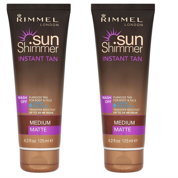 2 X Sunshimmer Water Resistant Instant Tan Wash Off Matte - Medium