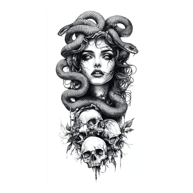 - 2 sheets of Temporary Medusa tattoos