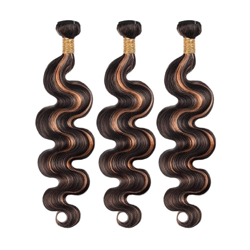 - Ombre Body Wave Bundles Color: P1B30 Bundles, Two Tone Black Mixed With Light Brown Bundles Human Hair, Shiny And Beautiful