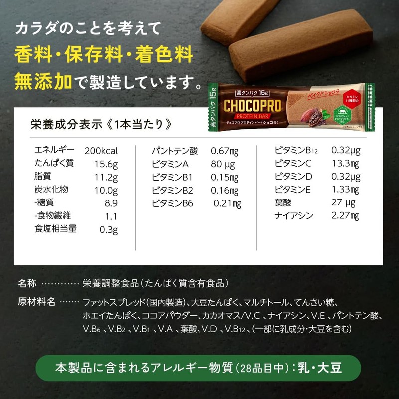 チョコプロ プロテインバー 20本入り ソイプロテインバー グラスフェッドホエイプロテイン 人口甘味料不使用 無添加 たんぱく質おやつ 国内製造