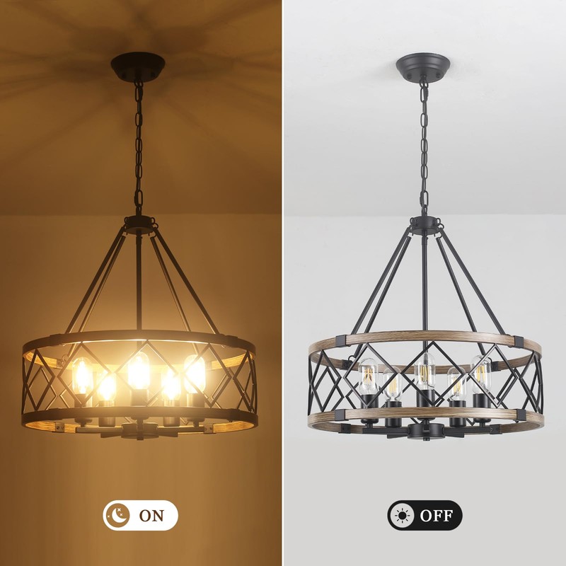 - 【Easy Installation】Hardwired. The rustic dining room chandelier includes all necessary assembly and installation parts, which makes you assemble the drum chandelier quickly and hassle-free. And you can install the black chandelier anywhere, whether it is a flat ceiling or a sloped ceiling