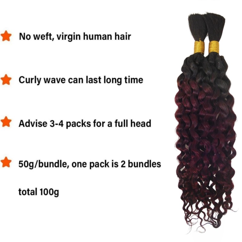 - Human Hair Deep Wave Bulk Color: 1b 99j,black and 99j Color.
