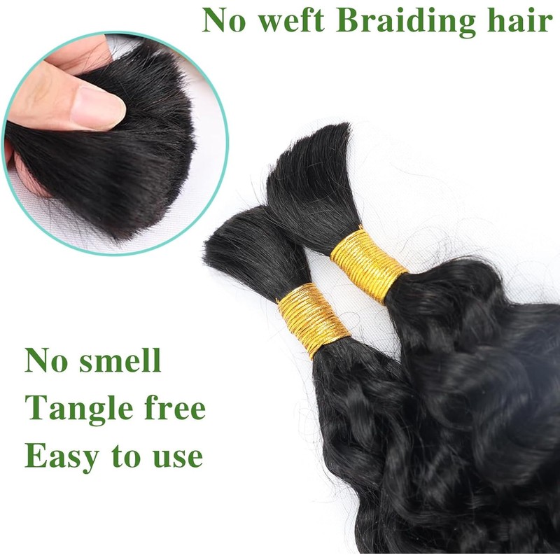 - Deep Wave Hair Bulk Hair Quality: High Quality Deep Wave Bulk human hair for micro braiding no weft, Tight & Neat, Tangle & Shedding Free, Elasticity & Bouncy, No louse & No smell& no lices, Can be Curled and Styled as your own hair.