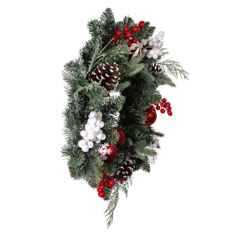 20-Inch Unlit Green Wreath with Pinecones, Balls and Berries