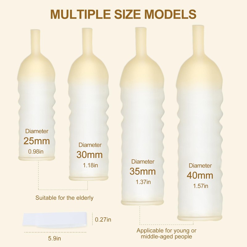 - 【Four Sizes for Flexible Fit】 Includes 20 external latex catheters in four size options (25mm, 30mm, 35mm, 40mm), allowing users to select a comfortable and personalized fit for daily use.