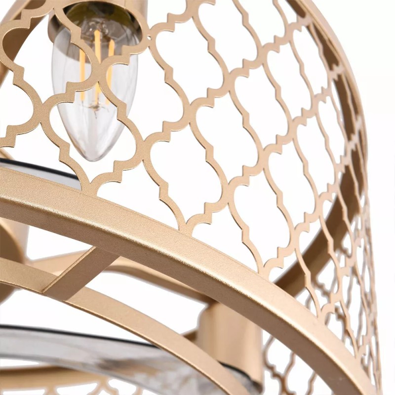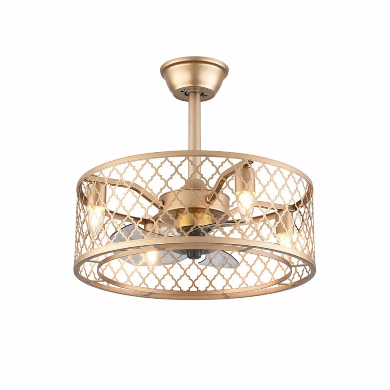 20" Modern Ceiling Fan With Light Metal Cage Chandelier Lamp W/ Remote Control