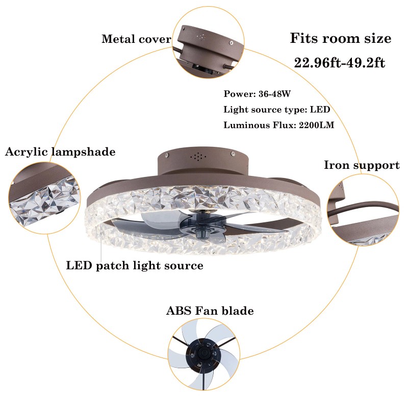 20" Modern Flush-Mount Ceiling Fan with Dimmable LED & Remote Control