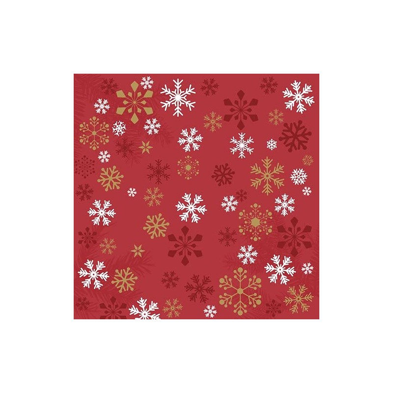 20 Napkins Flakes and Crystals on Red | Winter | Christmas | Table Decoration 33 x 33 cm