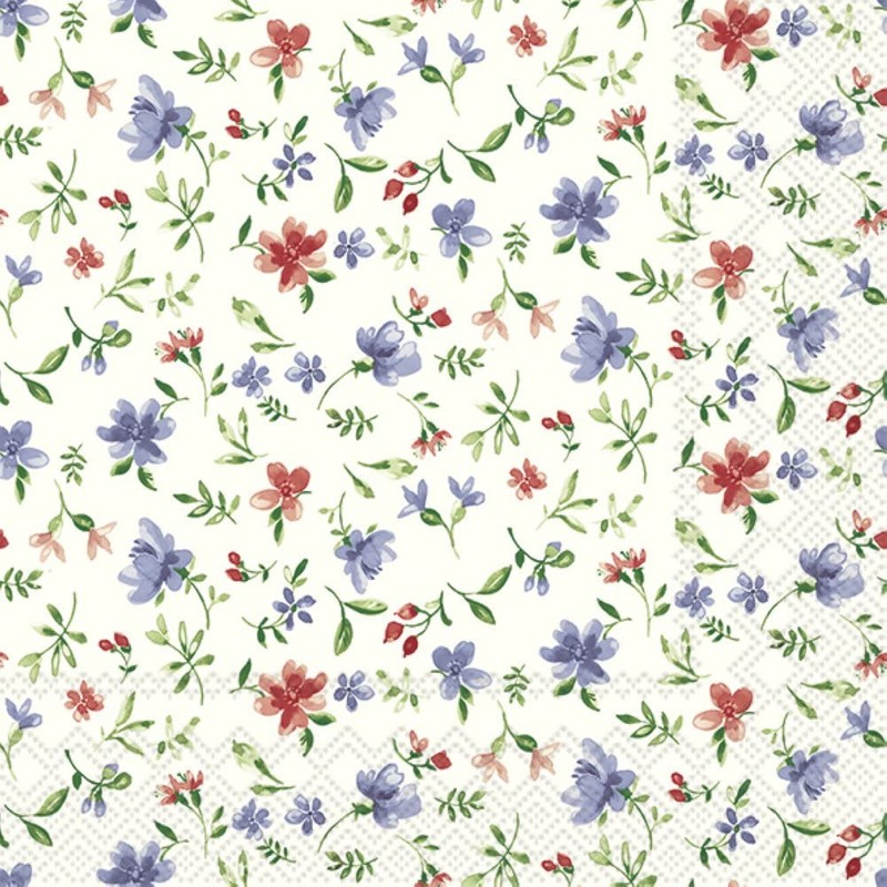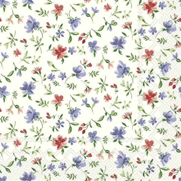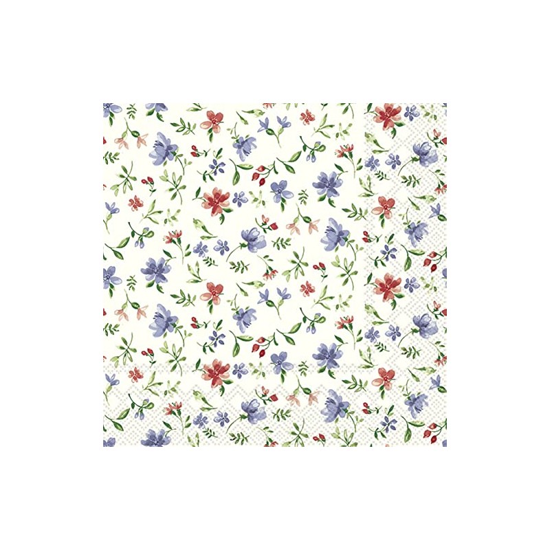 20 Napkins Fleurs Blue Red Flowers Mini Blue Red 33 x 33 cm