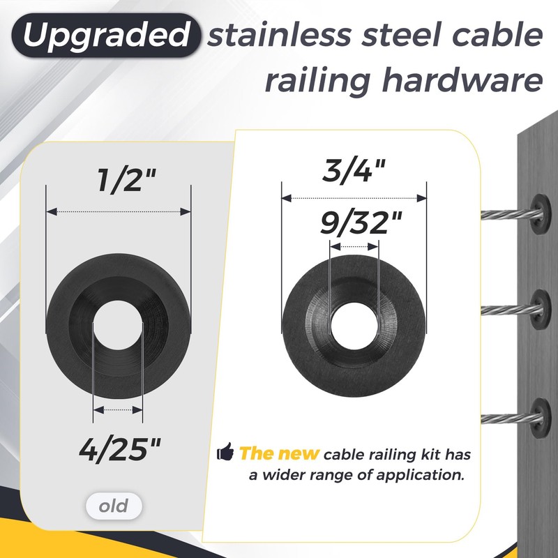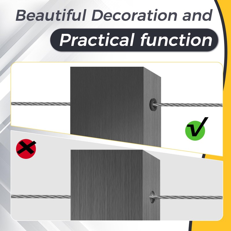 - Beautiful decoration: 1/8" Cable railing kit protector sleeve adhesive, a versatile solution for enhancing the aesthetic appeal of wire rope posts. With its ability to cover unsightly holes left behind when the wire rope is threaded through, 1/8" 5/32" 3/16" Cable railing hardware adhesive effortlessly creates a simpler and cleaner overall appearance, elevating the look of your railing system.