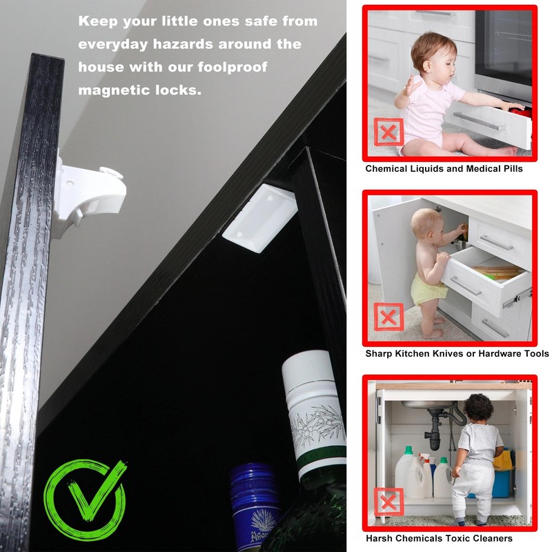 20 Pack Magnetic Cabinet Locks Baby Proofing Child Safety Cupboard Drawers Latches. (6 Keys)