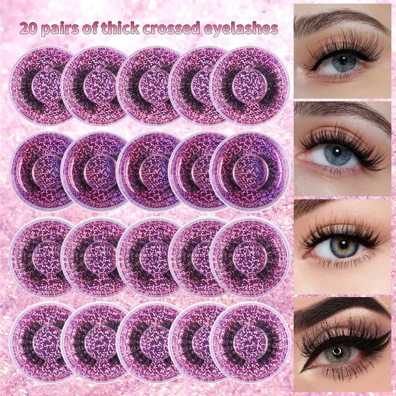20 Pairs Fluffy Natural Look Faux Mink Lashes Thick Crossed Eyelashes 4 Syles 3D False Eyelashes (G02)