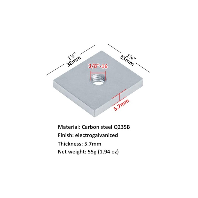 - Size: 1-3/8 x 1-1/2 inch (35x38mm), Thickness: 5.7mm,Hole diameter: 3/8"-16