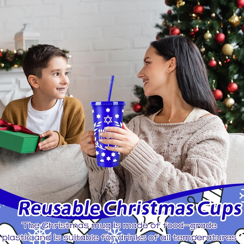 20 Pcs Hanukkah Plastic Cups with Lids and Straws Bulk 24oz Reusable Hanukkah Cups Hot and Cold Drinks Jewish Chanukah Plastic Tumblers Hannukah Party Drinking Cups Hanukkah Party Decorations