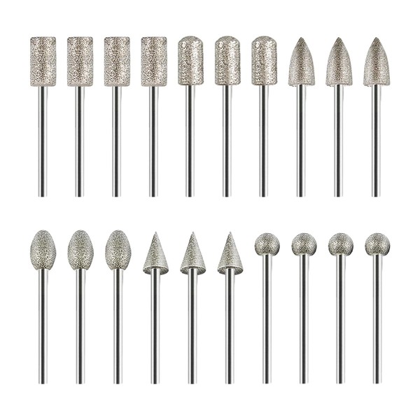 20-Piece Diamond Grinding Head Set, Diamond Burr Drill Bits, Emery Grinding Needles, Stone Engraving Set, Multi-shaped Grinding Tools, Suitable for Engraving and Polishing