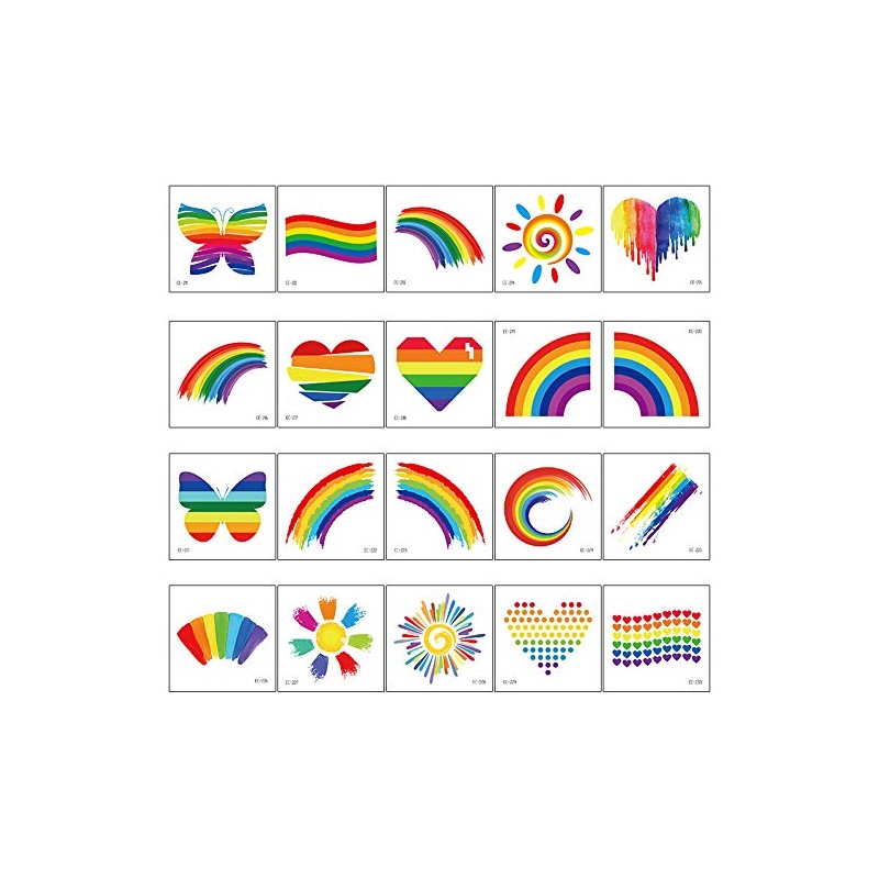 - You will receive all 20 sheets of rainbow tattoos as shown. Size: approx. 6 x 6 cm / sheet.