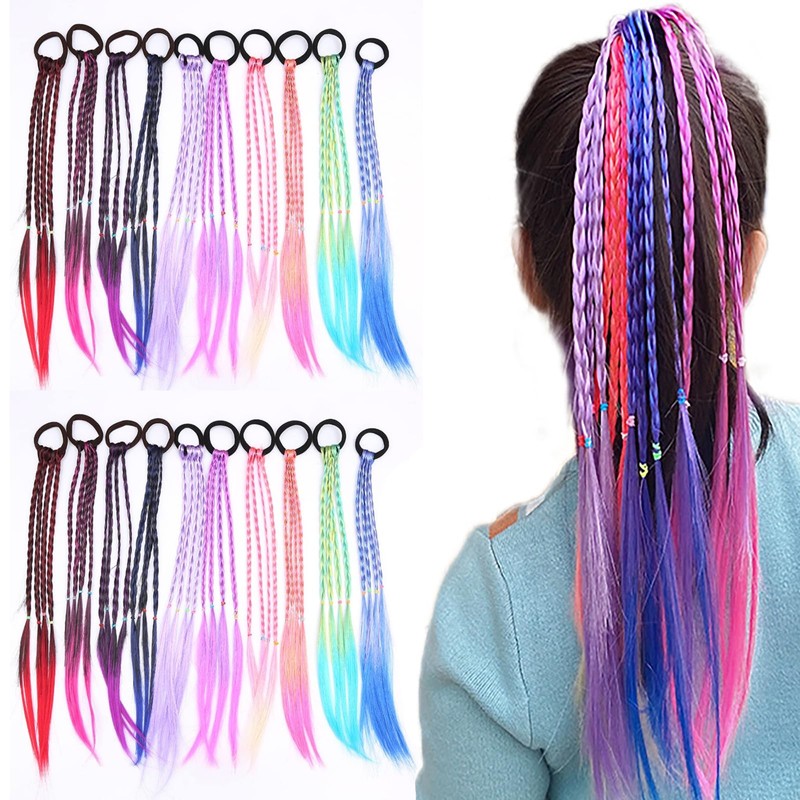 20 Stück Haarteile Twist Zöpfe, Zöpfe für Kinder mit Gummiband für Mädchen, Farbverlauf, Mädchen, Haarteil, Twist Zöpfe, für Kinder und Frauen (10 Farben)