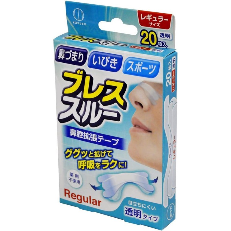 小久保工業所 ブレススルー (20枚入× 2個セット / 透明タイプ) 鼻腔拡張テープ 鼻テープ いびき防止テープ (レギュラーサイズ) KH-043