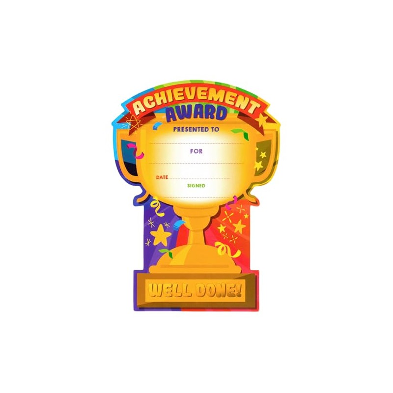 - ACHIEVEMENT AWARD CERTIFICATES FOR KIDS : Each certificate is uniquely cut in the shape of a trophy cup – a bold and exciting way to reward success, perfect for children