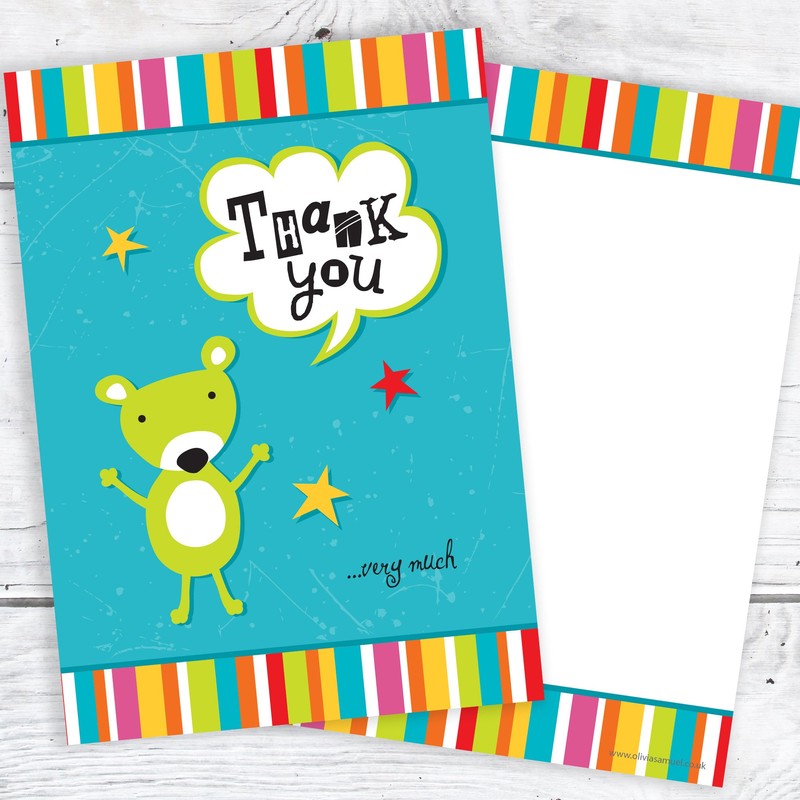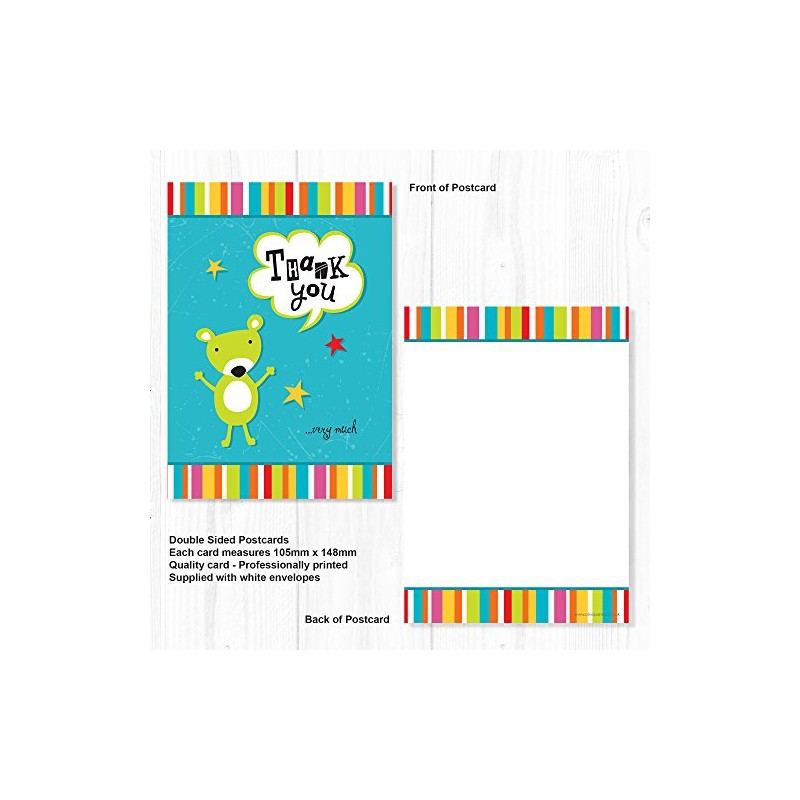 - POSTCARD STYLE THANK YOU CARDS - PACK OF 20 ⭐ Kids Cute Bear Design ⭐ Professionally printed both sides