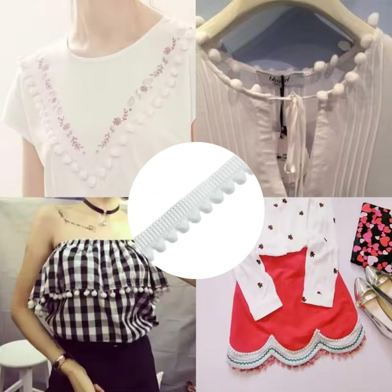 - Uses - Pom pom trim lace are widely used, including pillow lace, clothing, bed sheets, curtains, bags, earrings, necklaces, clothes, and more.