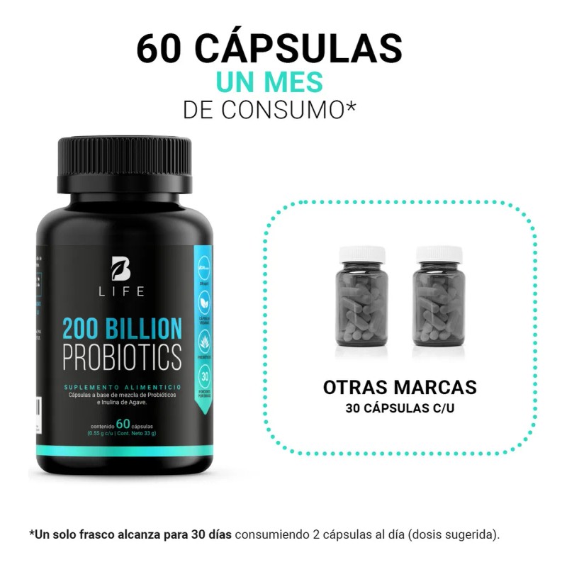 200 Billones De Probióticos 60 Cápsulas Con 11 Cepas B Life. Sabor Sin sabor