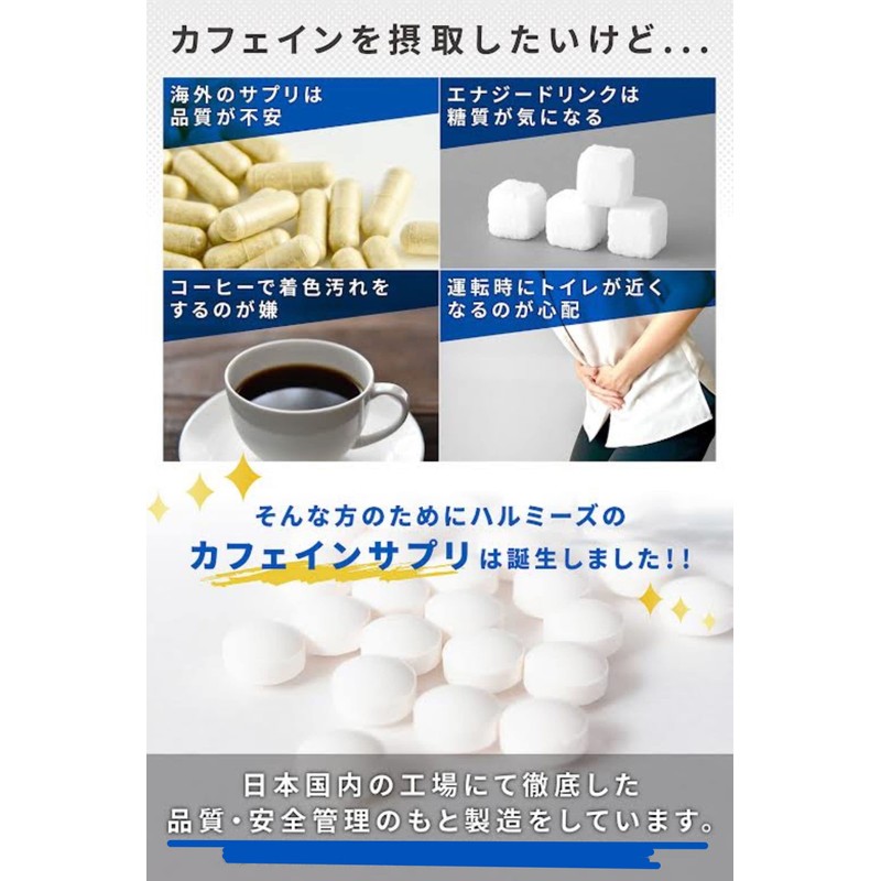 カフェイン200 Caffeine200 1錠200mgのカフェイン 1袋100錠入り 国内製造 携帯に便利なチャック付きパウチ ハルミーズ
