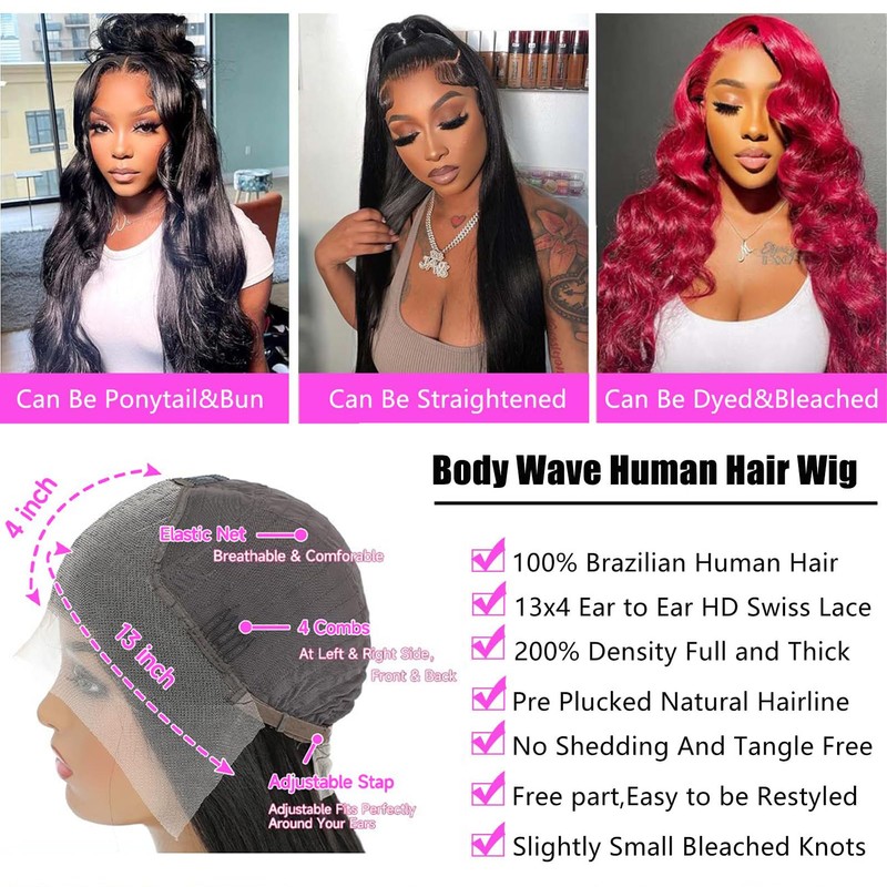 1.Type: 13x4 HD Lace Front Wigs Human Hair, Body Wave