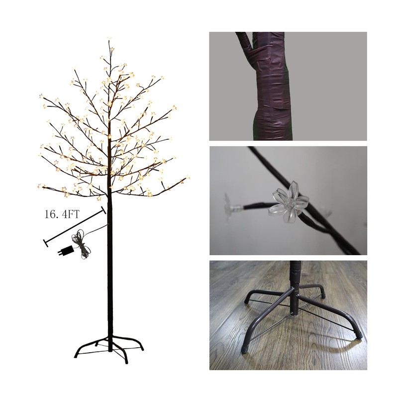 - Led Lighted Tree for Decoration - 6 FT Led cherry blossom lighted tree with 9.84 FT lead wire, 200 LED warm white lights brown branches. 200 removable cherry blossoms flowers, easy to assemble.