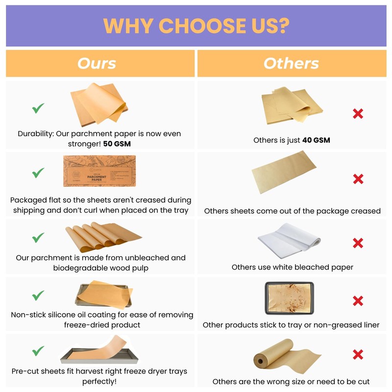 - Easy Removal: Our premium parchment paper prevents sticking, allowing you to effortlessly remove your freeze-dried goodies without any mess or damage.