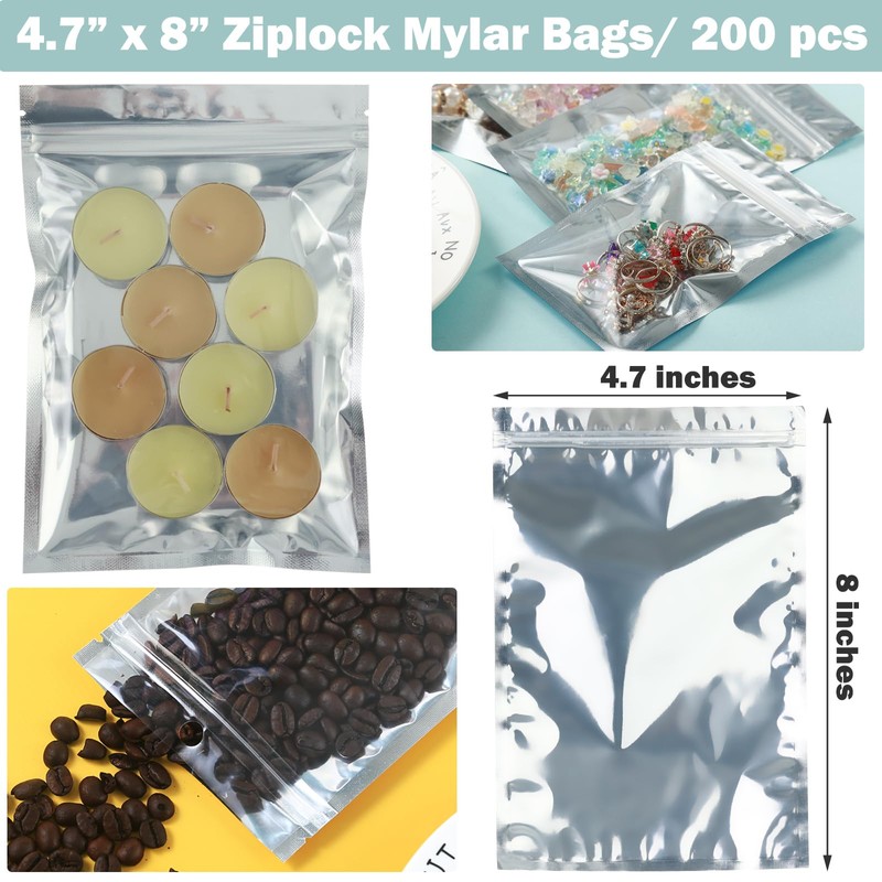 - Extra-value Set in Bulk: You will receive a package that includes 200 pcs of 4.7” x 8”mylar bags for food storage. These zip-lock bags with clear window are re-closable and reusable to protect your foods and goodies from dust, and dry climates weather.
