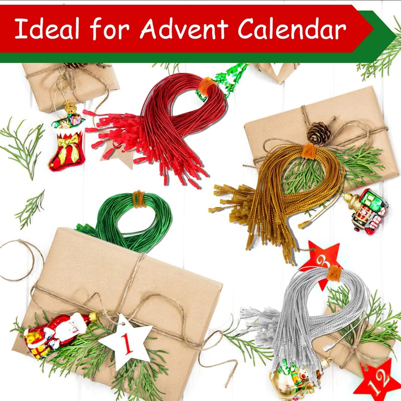 200 Pcs Christmas Ornament Hangers String with Snap Lock, Precut Xmas Ornament Hanger Ropes with Fastener for Christmas Tree Ornament Decorations, Gift Tags (Gold, Red, Green, Silver)