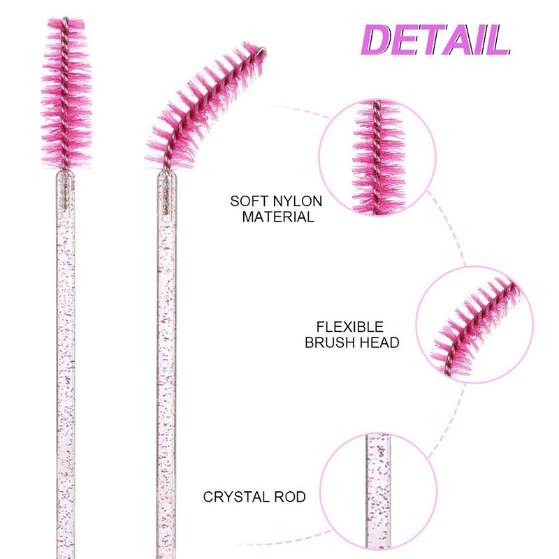 - Package include: 200 PCS Brand new with high quality Disposable Mascara Brushes Wands eyelash with lovely sparkling crystal handle and eyebrow brushes with Container,it's easy to carry around and suitable for use when traveling.