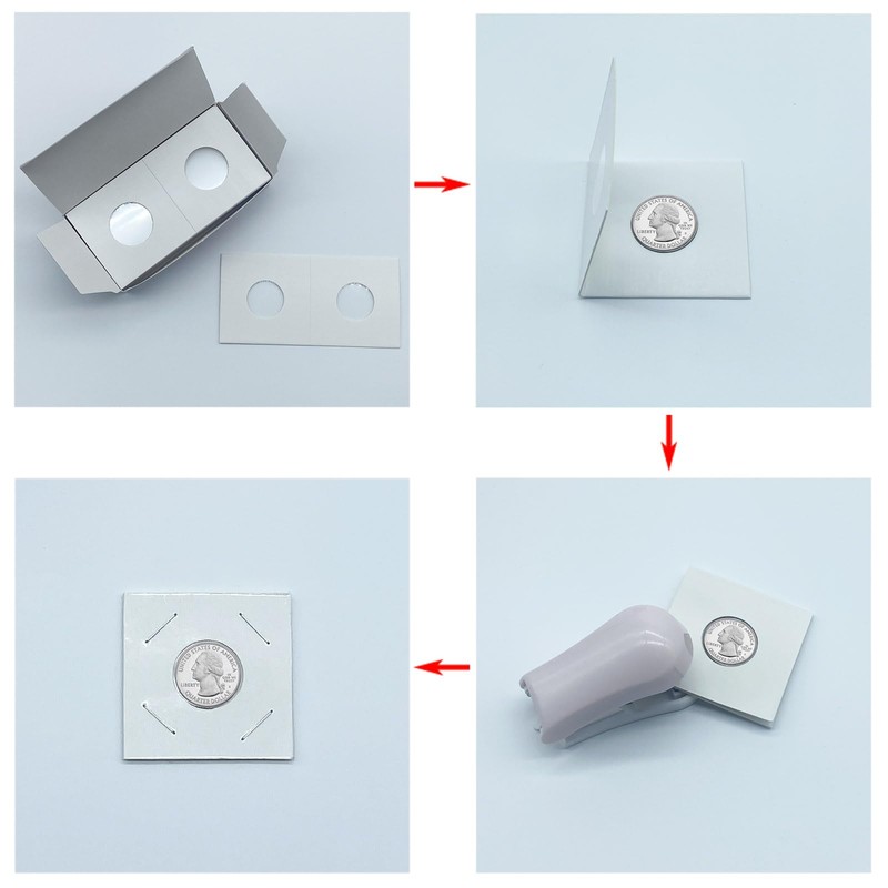 - EASY TO STAPLE: Firstly, accurately measure the coin diameter and match the corresponding size of the coin flip. Secondly, put the coin on the transparent film window and fold in half along the middle pattern, Finally, nail up the four corners with stapler