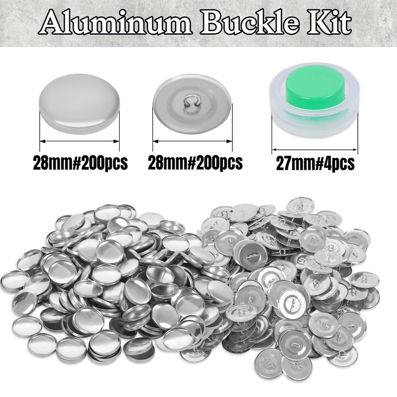- Versatile Sizes: The cover button tool includes aluminum buttons (200pcs × 28mm) and aluminum button molds (4pcs × 27mm).