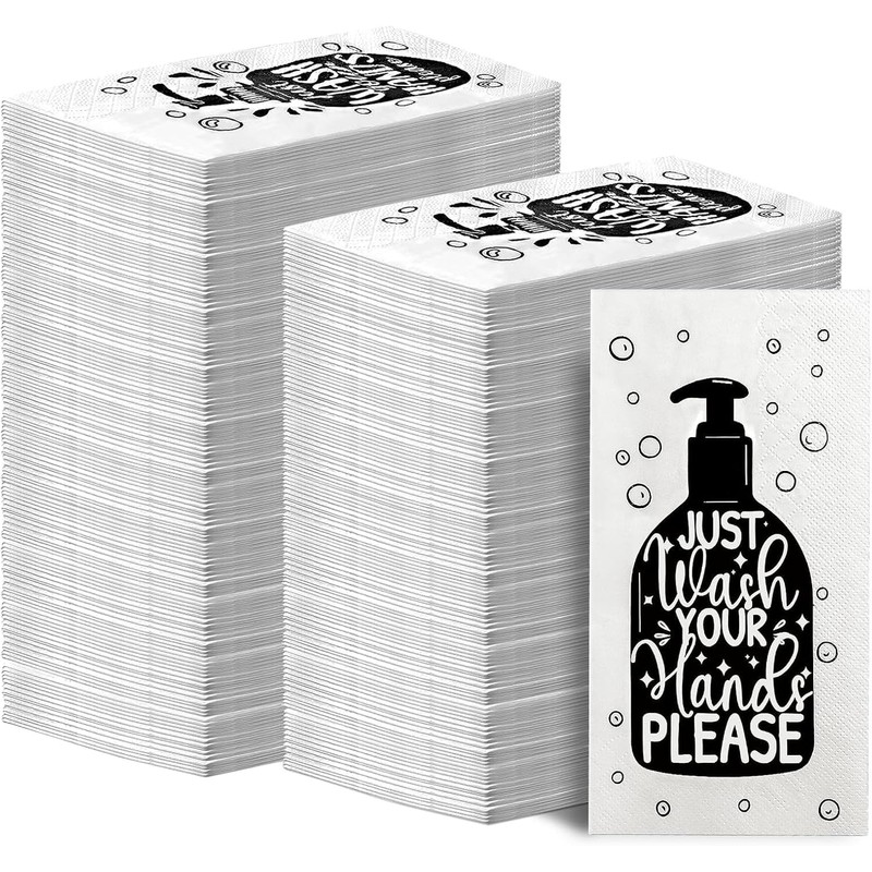 - Personalized Napkins -- Diese Badezimmer-Papiertücher haben ein modernes Design mit einer Illustration einer Flüssigseifenflasche und gut lesbarem Text. Sie sind nicht nur funktional, sondern auch optisch ansprechend. Das Design verleiht Ihrem Bad einen zeitgemäßen Touch und erinnert Ihre Gäste stilvoll ans Händewaschen