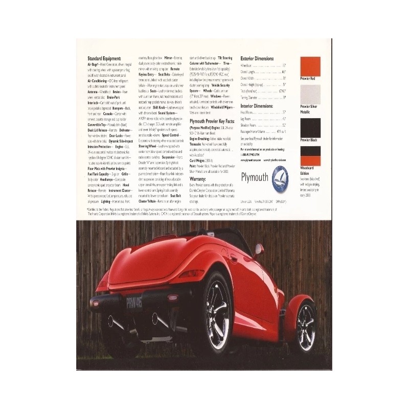 2000 00 Plymouth Prowler original Sales brochure MINT