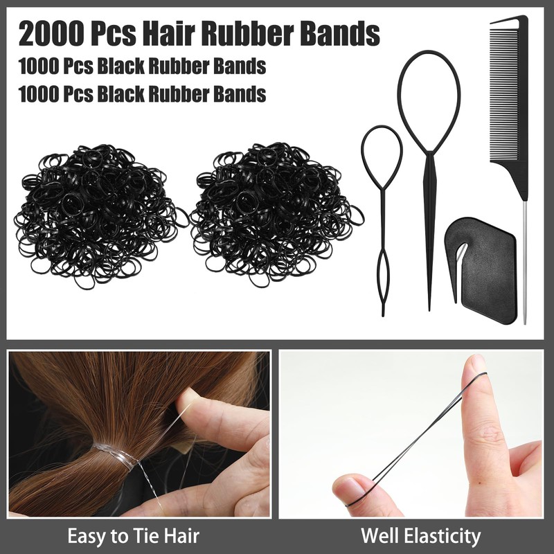 - Sufficient quantity: We have a total of 2000 black hair bands, enough for your needs. Also includes 1 x hair comb, 1 x elastic, 2 x hair tools. These hair accessories can help you style different hairstyles