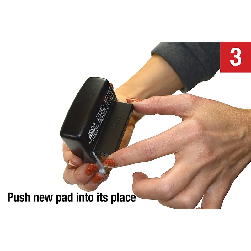 Key business phrases make this dater even more effective. Phrases include: APPROVED, URGENT, E-MAILED, CANCELLED, CHARGED, CHECKED, DELIVERED, CREDIT, FAXED, PAID, RECEIVED, SHIPPED. Four-band date: months, days and six-year band. Use phrase and date together or separately. Plastic frame. Includes snap in/out, cartridge-style black ink pad. Type size 1.