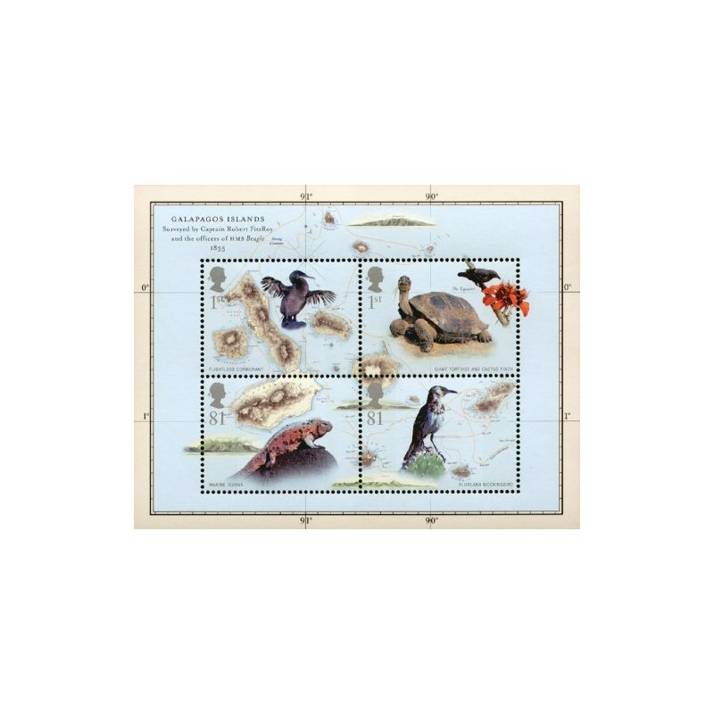 This miniature sheet was issued to celebrate the 150th Anniversary of Charles Darwin’s publication of 'On the Origin of Species by Means of Natural Selection'. Darwin was one of the world's greatest naturalist, he studied in areas such as zoology, botany, geology, ornithology and anthropology. The miniature sheet consists of two 1st Class stamps and two 81p stamps.