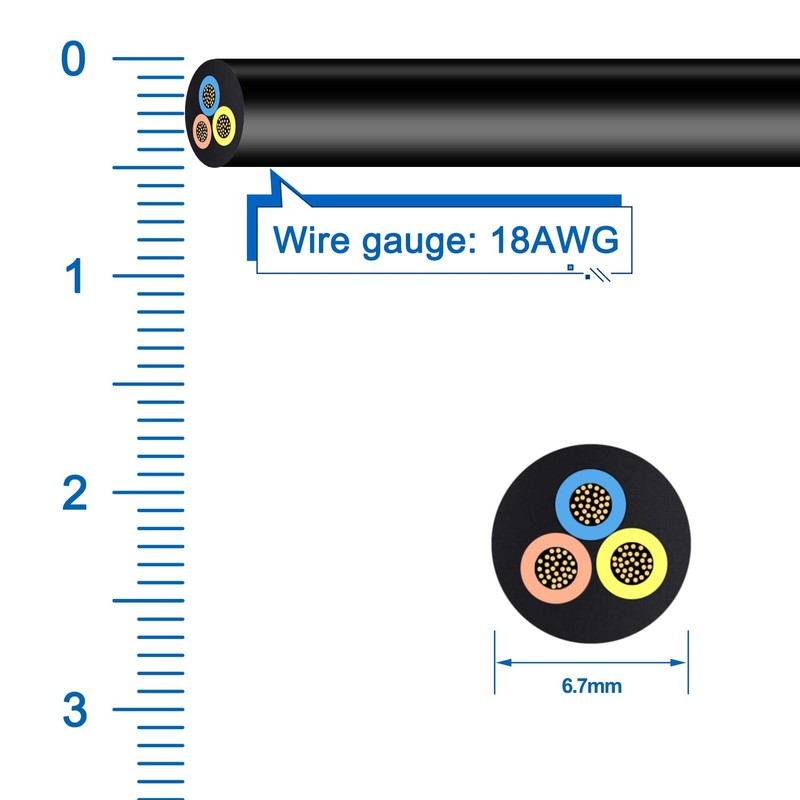 200ft 18 Gauge Electric Wire 18AWG Extension Cable Wire 3 Conductor Copper Wire with Ground 3 Core Blackwire RVV 0.75mm² Cord (300/500V)