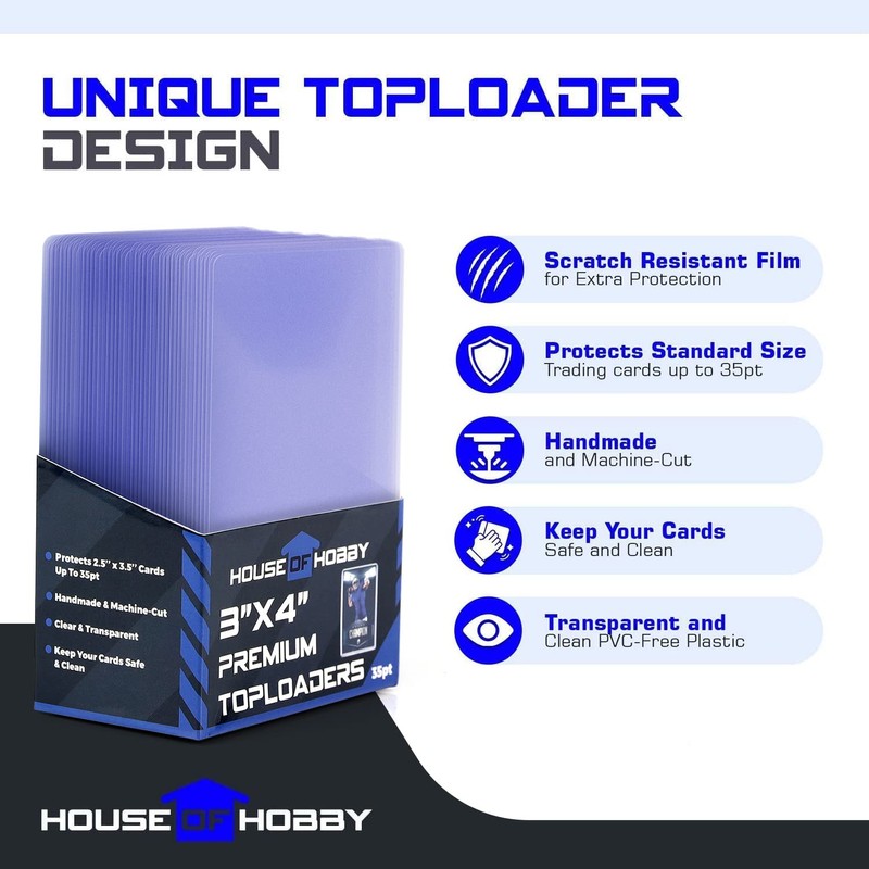 - Protect your trading cards with our premium top loaders for cards that are sized to fit Yugioh, Magic: The Gathering, card sleeves, and most sports cards! Handmade & Machine-cut from rigid, crystal clear plastic with an added scratch resistant peel-off layer that helps prevent scratches throughout storage. Our card top loaders work great with our card sleeves which are included in this 100 top loader and 100 card sleeves bundle.